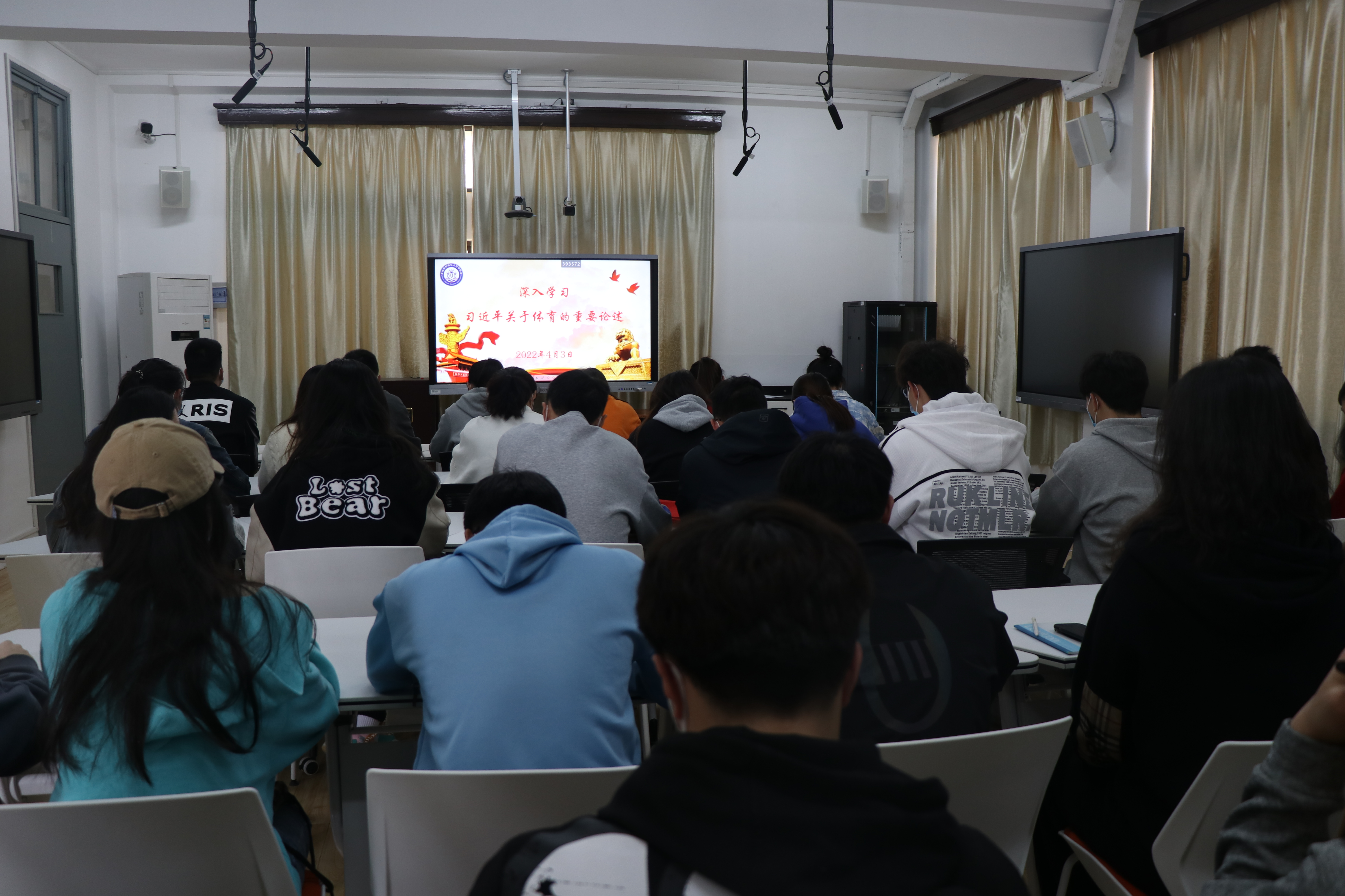 4月3日上午,体育教育与人文学院学生党支部18级、19级两个党小组于少体校智慧教室开展了《深入学习习近平关于体育的重要论述》集中学习。