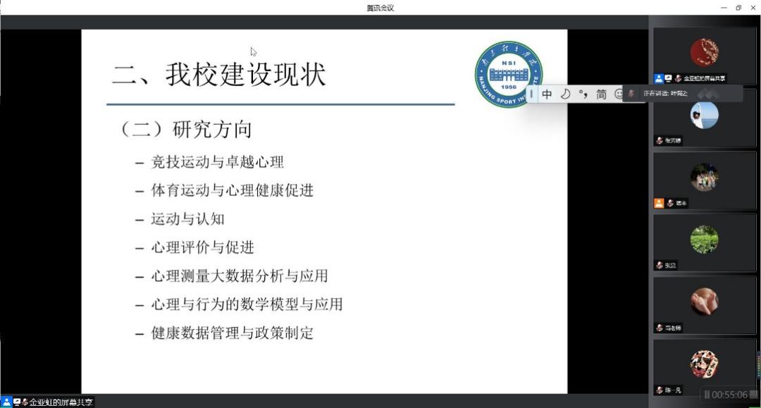 为有序开展体育运动心理学科建设,以体育运动心理学硕士点申报为抓手,助力我校申博工程工作推进,在体育教育与人文学院指导和部署下,4月5日下午通识教育部线上召开“体育运动心理学科建设与发展”研讨会。体育教育与人文学院副院长叶强、通识教育部全体教师参与会议。会议由通识教育部主任蒋丰主持。