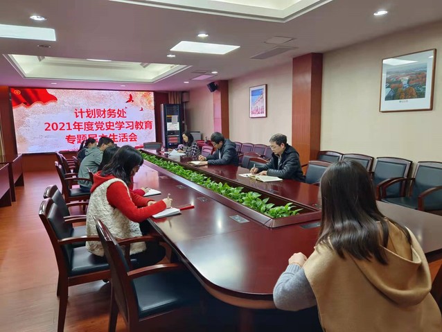 2022年1月11日,计划财务处在301会议室召开2021年度党史学习教育专题民主生活会。计划财务处领导班子全体成员和科长参加会议。计划财务处处长丁锴主持会议并代表班子作检视剖析。