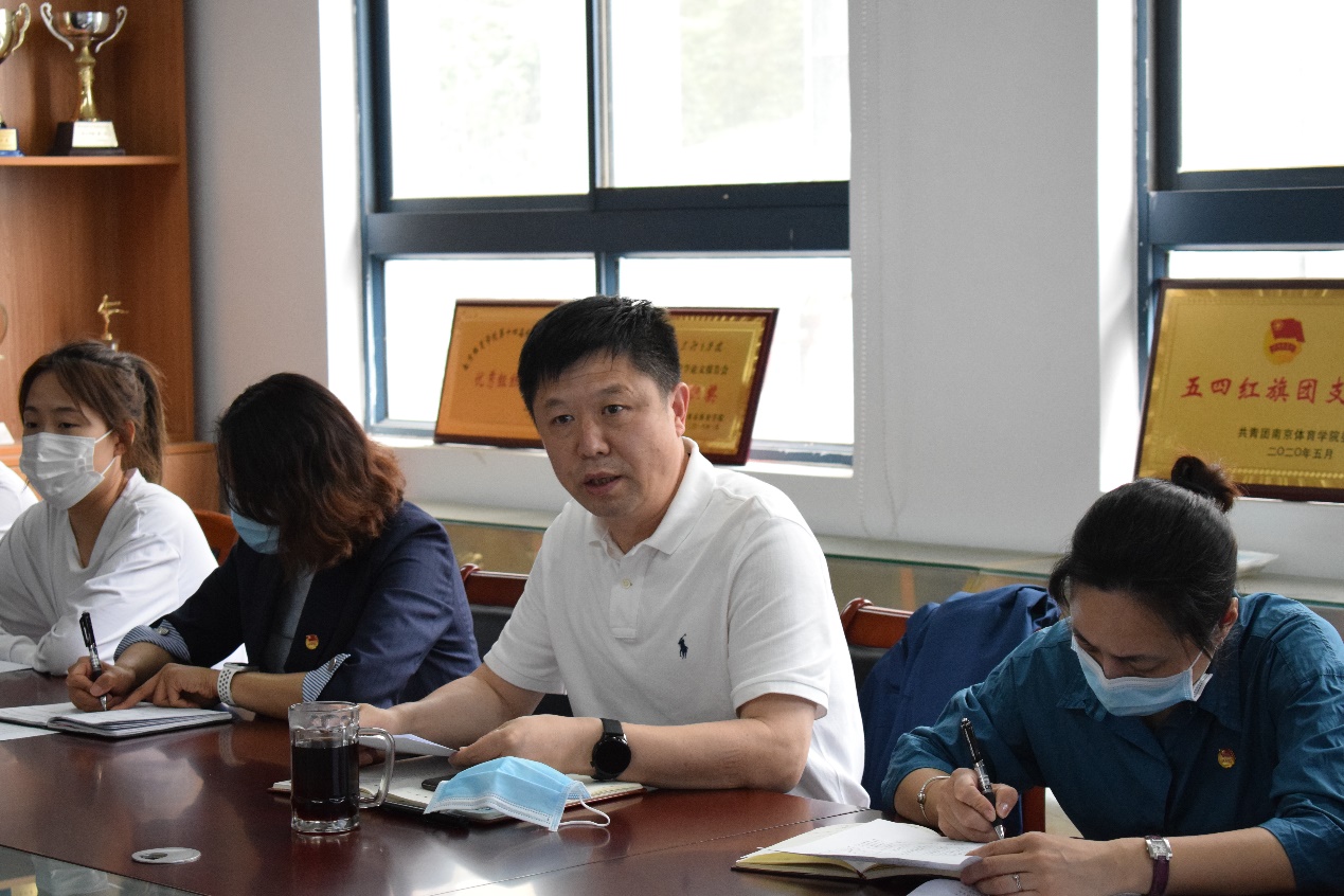 张亚军代表学院党总支对学院团委组织团员青年深入学习贯彻习近平总书记重要讲话精神提出具体要求,希望学院团员青年坚持用习近平新时代中国特色社会主义思想武装头脑,把学习习近平总书记在庆祝中国共产主义青年团成立100周年大会的重要讲话与“喜迎二十大、永远跟党走、奋进新征程”主题教育实践活动结合起来,与统筹做好校园安全稳定、常态化疫情防控、日常教学训练结合起来,打牢专业基础、筑牢思想根基,在实现“体育强国”“健康中国”宏伟战略中,展现南体青年担当,贡献运训青年智慧,在大有可为的新时代实现人生梦想!