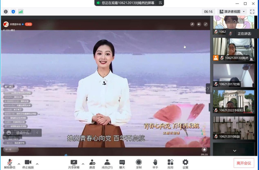 一、观看“青春心向党 百年再启航——学习习近平总书记在庆祝中国共产主义青年团成立100周年大会上的重要讲话精神”主题云团课
