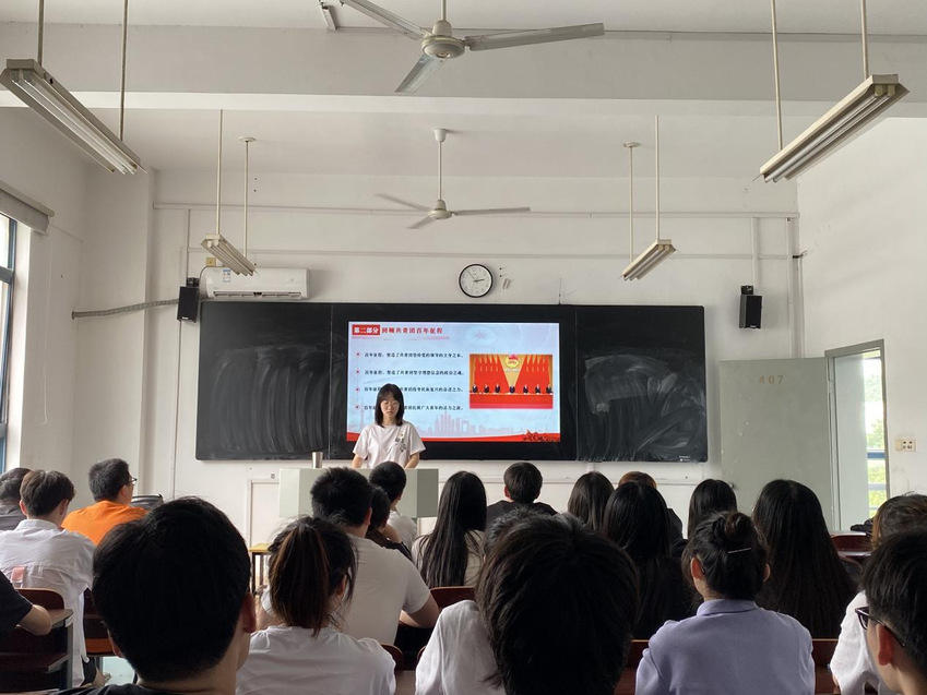 学院学生讲师团成员、校团支部书记思政技能大比武三等奖获得者郑凯琪、宦嘉欣,分别带领团员青年领学习近平总书记在庆祝中国共产主义青年团成立100周年大会上的重要讲话精神,接着开展“不负殷切期待 担当青春使命”主题宣讲,与团员青年们重温共青团的初心和使命,回顾了一百年前的青年学子为民族复兴抗争、为振兴中华呐喊、为救国拯民不惜抛弃个人一切的求索奋斗精神,并希望学院团员青年志存高远,将个人理想融入民族复兴,在实现梦想的征途中脚踏实地,释放青春激情,为祖国建设添砖加瓦。