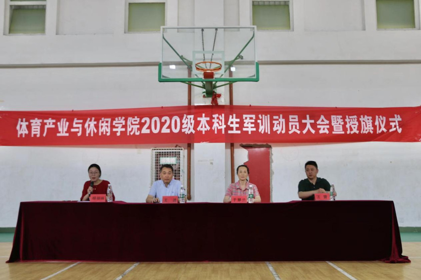 6月16日上午,体育产业与休闲学院2020级本科生军训开营仪式在仙林校区篮球馆举行。体育产业与休闲学院党总支书记王进,院长于翠兰,校党委人民武装部、保卫处政保科科长汪雷出席仪式。学院2020级辅导员和班主任、五连教官以及全体参训学生参加仪式。开营仪式由体育产业与休闲学院党总支副书记杨丽丽主持。