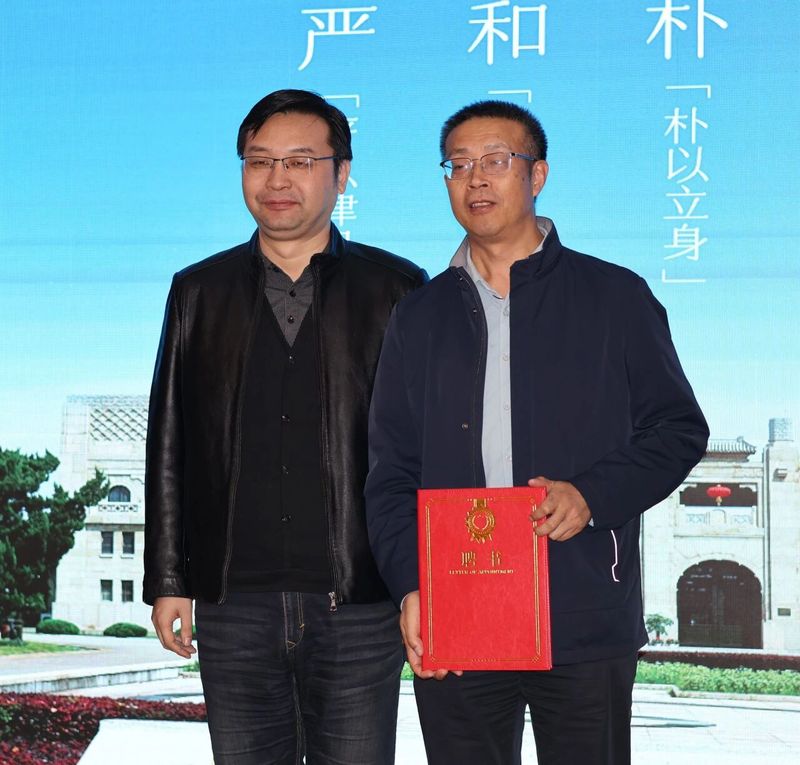 刘海宁为盐城分会会长孙耀华、联络员孙国友颁发聘书。之后由会长孙耀华代表分会与刘海宁共同为“南京体育学院校友会盐城校友分会”揭牌,并为副会长、秘书长、副秘书长颁发聘书。