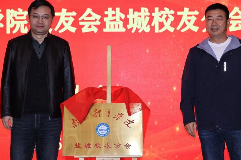 刘海宁与孙耀华共同为盐城校友分会揭牌
