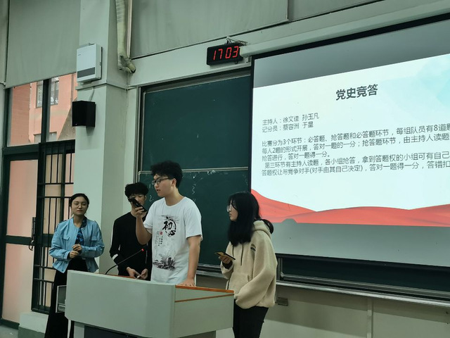 为深入开展党史学习教育活动,创新党史知识学习的方法和途径,加深团员青年对党的历史、党的知识、党的理论路线和方针政策的认识,坚定走中国特色社会主义道路的信心,152041团支部、152042团支部开展纪念建党100周年“赛党史 砺初心”主题团日活动,帮助学生营造浓厚的学习氛围,以赛促学、以学促用,增强了青年学生学习党史的兴趣,让百年党史深入青年心,激励青年从历史中获得启迪,以更加昂扬的精神状态和奋斗姿态建功新时代、奋进新征程。
