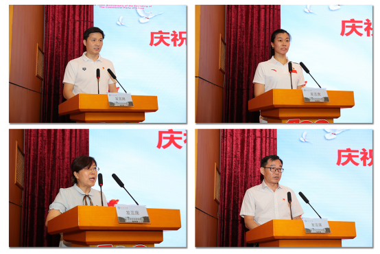 江苏省高校先进基层党组织代表游泳学院党总支书记王伟新,优秀共产党员代表乒羽学院羽毛球教练员汤金华,优秀党务工作者代表运动健康学院党总支委员、副院长赵彦,先进基层党组织代表后勤党总支第一党支部书记郁东在会上作了发言。他们对校党委的表彰深表感谢,表示今后定不负期望、再接再厉。