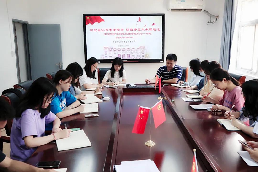在举国上下庆祝中国共产党百年华诞之际,为进一步学习习近平总书记系列重要讲话精神,推动我校团学组织党史学习教育进一步走深走实, 6月28日下午,校团委在双创会议室召开了“学党史忆百年峥嵘岁 悟使命望未来辉煌途”——南京体育学院校级团学组织“七一”专题党史学习会。校团委副书记赵玉超、校团委副书记杨蓉、校团委老师吴圣平出席会议,团委工作人员、校级学生组织主席团成员参加了本次会议。会议由校团委副书记杨蓉主持。