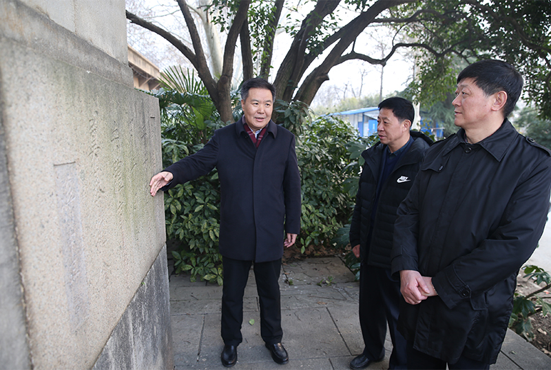 2月24日下午,江苏省政协副主席、南京大学党委书记胡金波,全国政协常委、民盟中央常委、江苏省政协副主席、民盟江苏省委主委、南京中医药大学校长胡刚,民盟江苏省委专职副主委吴胜兴,民盟江苏省委副主委、省体育局副局长刘彤、民盟江苏省委副主委黄贤金,民盟江苏省委组织部长肖波一行来我校调研。