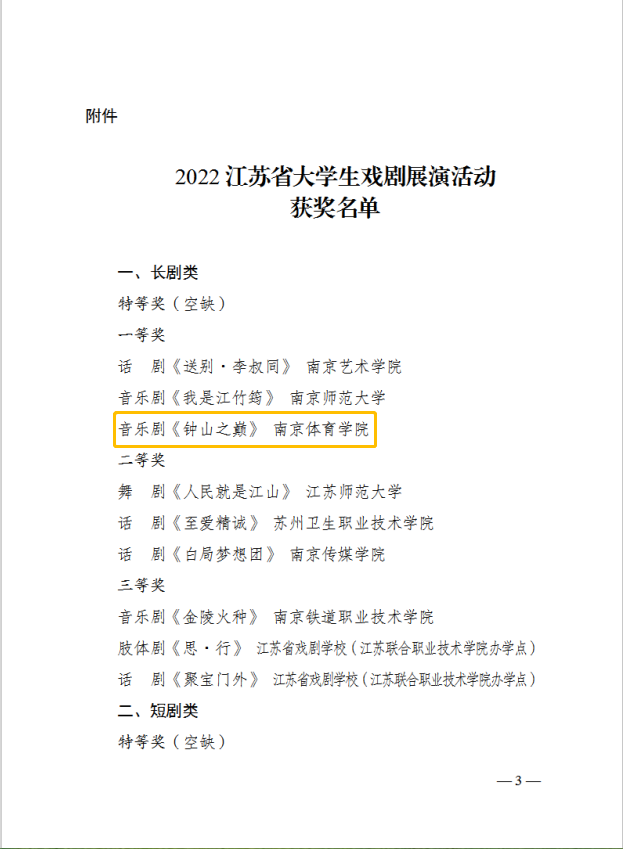 近日,江苏省委宣传部、江苏省教育厅联合下发《关于公布2022江苏省大学生戏剧展演活动获奖结果的通知》,公布了2022江苏省大学生戏剧展演评奖结果。我校原创音乐剧《钟山之巅》喜获长剧类一等奖。