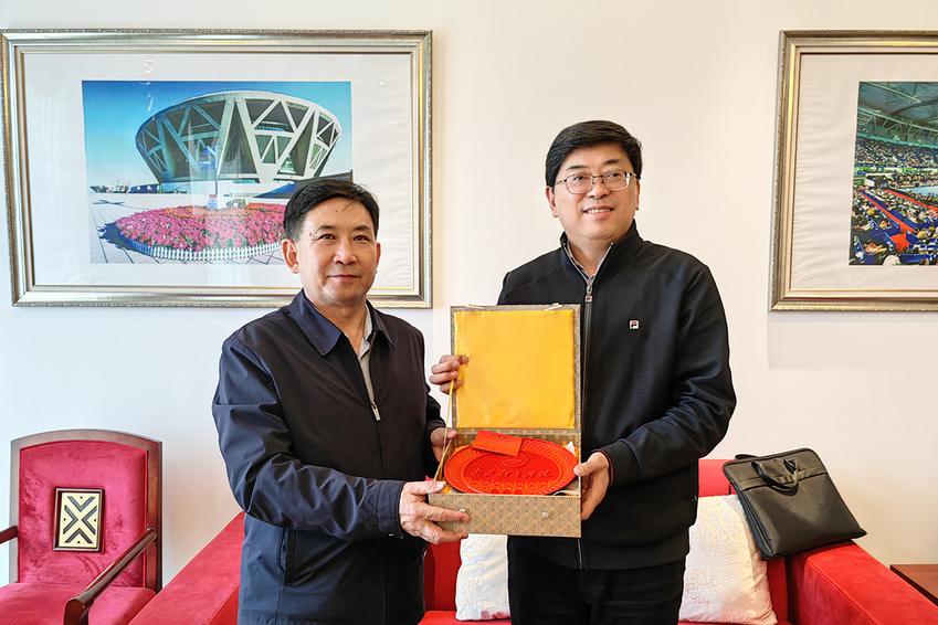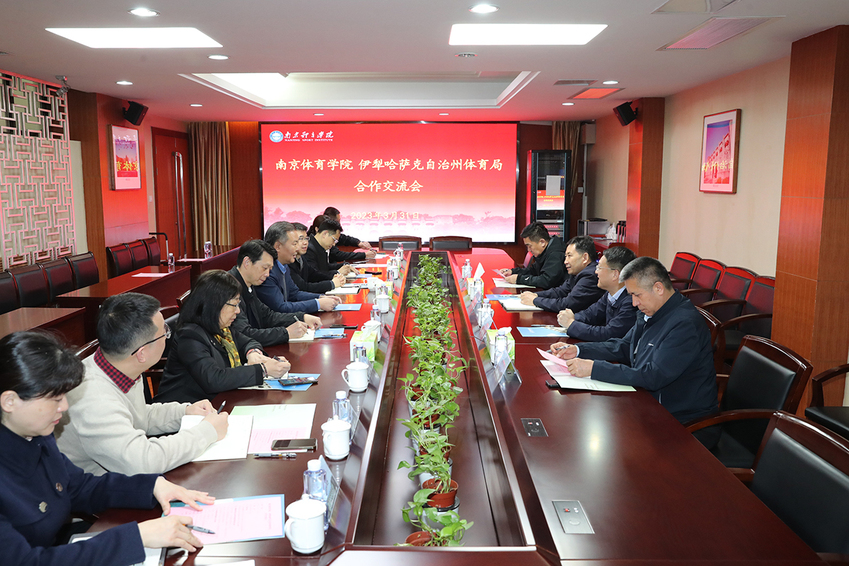 朱传耿在会上向多力坤·马那甫一行的到访表示了欢迎。他结合我校在办学区位、历史文脉、特色机制等方面内容对学校整体情况作了介绍。朱传耿指出,南京体育学院坐落于紫金山南麓,校园风光秀丽、自然环境优美,学校坐拥民国中央体育场、民国中央国体专校旧址等富有深刻体育文化底蕴的建筑群落,承袭了中国体育事业发展的百年文脉,亲历了我国体育事业从“体育救国”、“体育兴国”、“体育报国”到“体育强国”的四个主要历史阶段,在建校以来逐渐形成了教学、训练、科研“三位一体”的“南体模式”,为国家培养了以16位奥运冠军、106位世界冠军为代表的大批优秀体育人才,在探索体教融合发展道路上走在了全国前列。他表示,希望以此次交流为契机,不断增进双方了解,促进合作共建,有效助力伊犁体育事业发展。