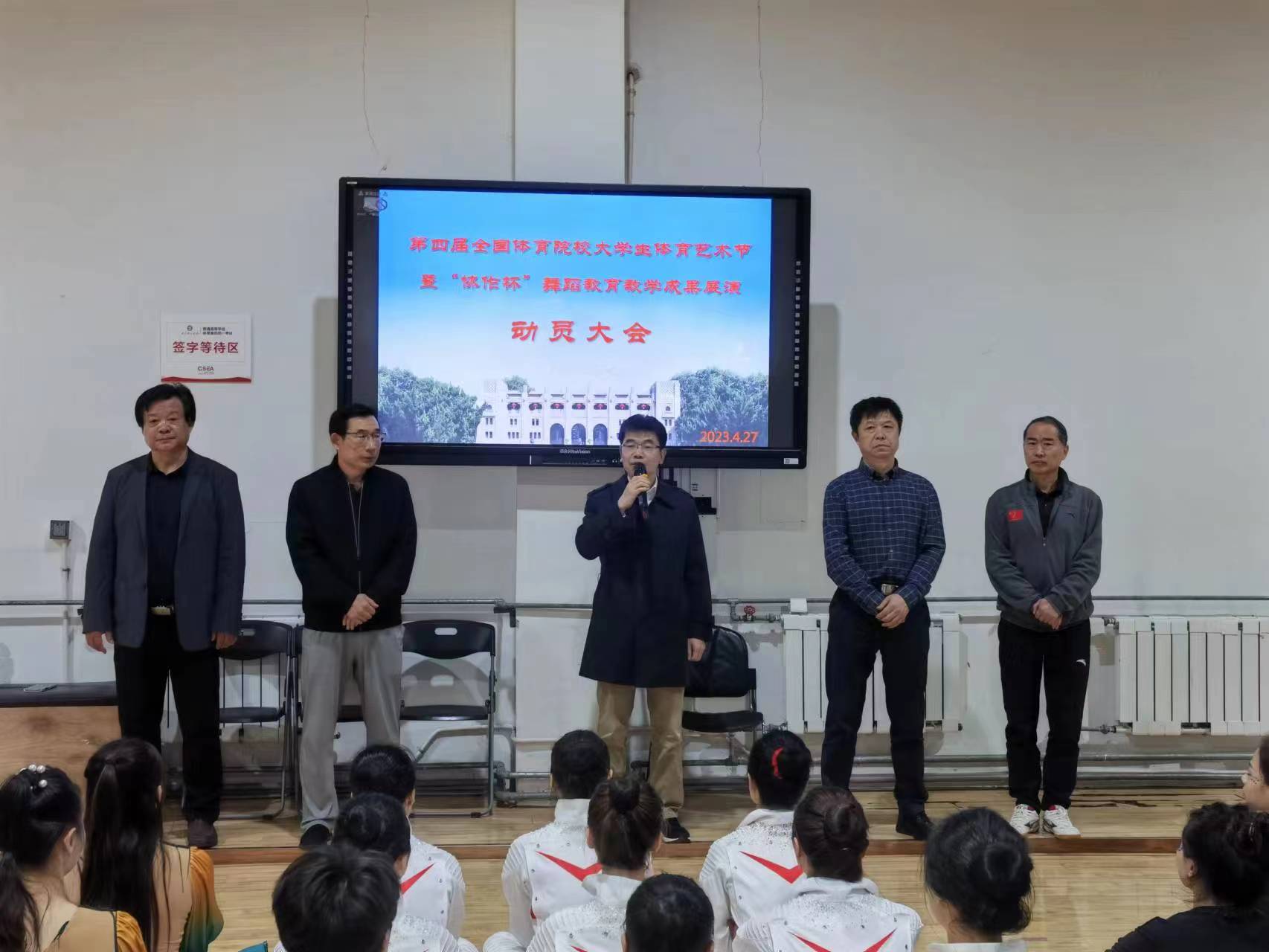 第四届全国体育院校大学生体育艺术节暨“协作杯”舞蹈教育教学成果展演赛将于4月29日-5月3日在郑州科技学院举行。4月27日下午,武术与艺术学院在综合馆体育舞蹈房举行节目预演暨出征动员会。校党委副书记兰亚明现场观摩节目预演并作动员讲话。动员会由武术与艺术学院院长支川主持。