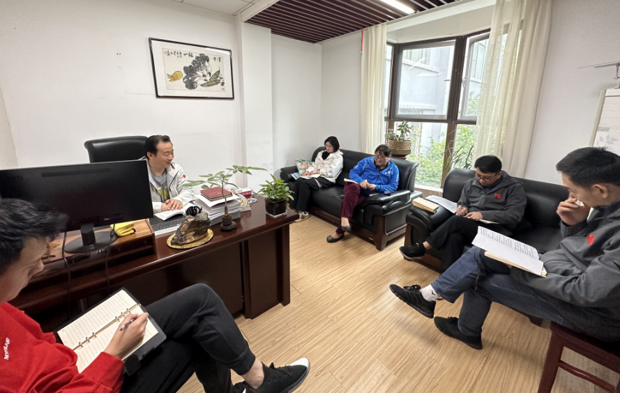 5月8日上午,乒羽学院党总支理论学习中心组(扩大)开展主题教育读书班集中学习研讨。乒羽学院院长冀方新主持并领学,全体管理干部参加了学习研讨。