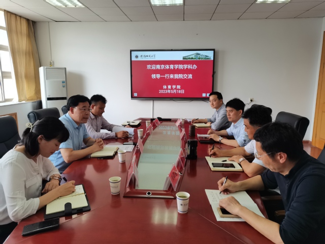 为进一步夯实我校申博工作基础,吸取兄弟院校申博工作成功的有益经验,2023年5月18日下午,学科建设办公室主任郭修金带领学科办等一行4人赴安徽师范大学体育学院调研交流。安徽师范大学体育学院党委副书记、院长金涛,副院长高升,研究生院学位建设办公室主任葛睿和体育学院科研、研究生办公室王运良教授等热情接待了调研组一行。