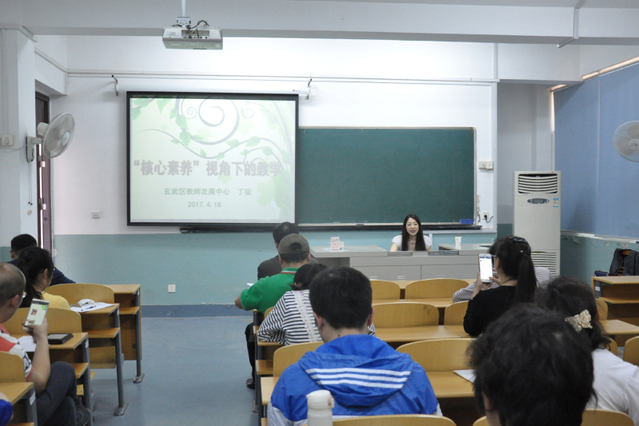为配合我校今年开展的“培养学生‘核心素养’”主题教育活动,4月18日中午,玄武区教师发展中心专家组一行3人来我校进行工作指导。我校全体教师在学校三楼多媒体教室聆听了玄武区教师发展中心丁征副校长开设的以“‘核心素养’视角下的教学”为题的专题讲座。
