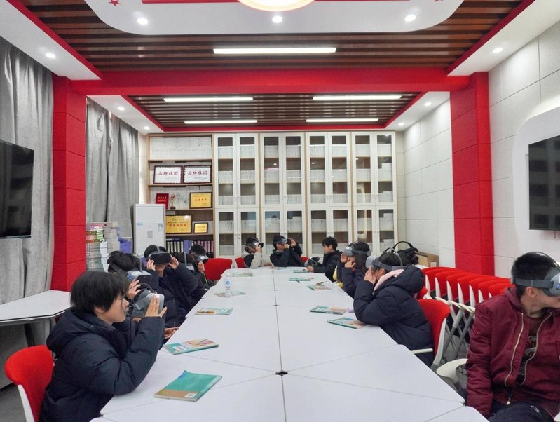 作为学校大中小学思政课一体化教育建设的重要组成部分,本次微课堂充分发挥VR 技术优势,筑牢学生成长的思想根基。课堂上,李军老师围绕 “青春担使命,奋进新征程” 主题,通过 VR 设备打造出逼真的历史场景,引导同学们了解党的重大历史事件和历史发展脉络。同学们戴上 VR 眼镜,仿佛 “置身” 于历史事件场景,在互动体验中直观感受党的初心使命、体会新时代青年的责任担当,打破了传统思政课堂的时空限制。