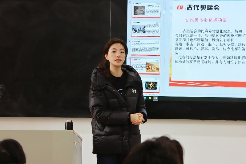 课堂上,康晓磊围绕奥林匹克运动的起源、发展历程、核心精神及现代奥林匹克运动的时代价值展开讲解。结合经典赛事案例与运动员拼搏故事,她生动阐释了“更快、更高、更强、更团结” 的奥林匹克格言内涵,引导学子们从奥林匹克精神中汲取奋进力量,树立顽强拼搏、永不言弃的人生态度。