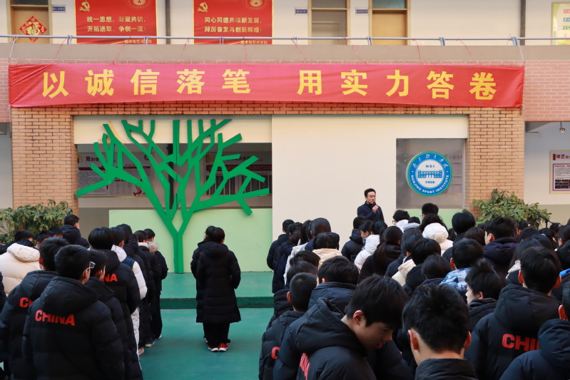 最后,杨勇以“学训双优守初心 诚信应考创佳绩”为主题开展期末考试动员。他赞扬了同学们在训练场上拼搏争先所展现的优秀品质和坚实底气,并强调诚信是立身之本,更是考场铁律,告诫大家“人无信不立”,诚实的品格才是未来最亮的勋章。