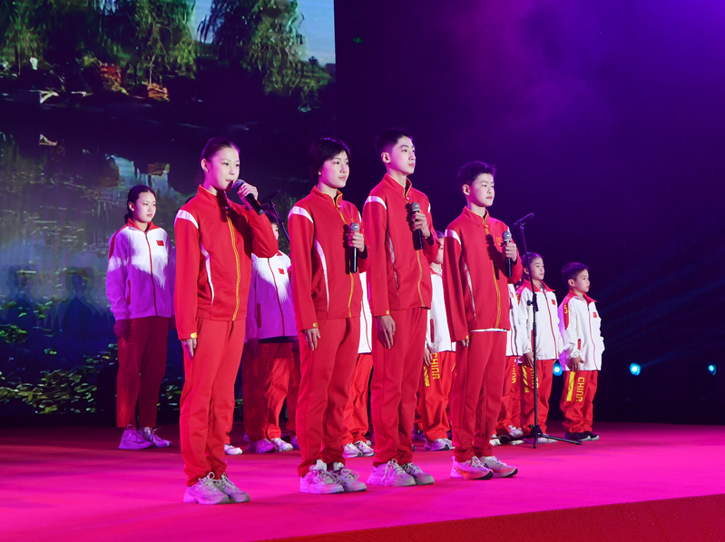典礼现场,聚光灯亮起时,附属学校学子们身着整齐的演出服,身姿挺拔,目光坚定。“泳池碧浪,卷起神州旋风……” “南体健儿,书写拼搏传奇,鼓舞亿万国人奋发图强!”一声声诵读,抑扬顿挫,情感充沛。当他们合诵“为国争光,是我们矢志不渝的使命;顽强拼搏,是我们勇攀高峰的力量”时,那不仅是台词,更是他们日常训练生活的真实写照,是与台下获奖榜样们心灵的共鸣。当“吾辈当自强”的铿锵之音在会场反复回荡、最终汇聚成震撼全场的强音时,现场爆发出热烈掌声。这掌声,既献给节目的精彩,更献给这群小小运动员身上已然闪耀的、与榜样同源的拼搏光芒。