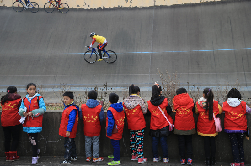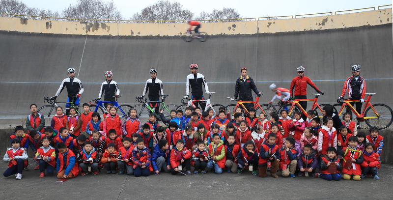第六届全国城市运动会场地自行车项目女子记分赛金牌得主吴超梅受到小记者围捧