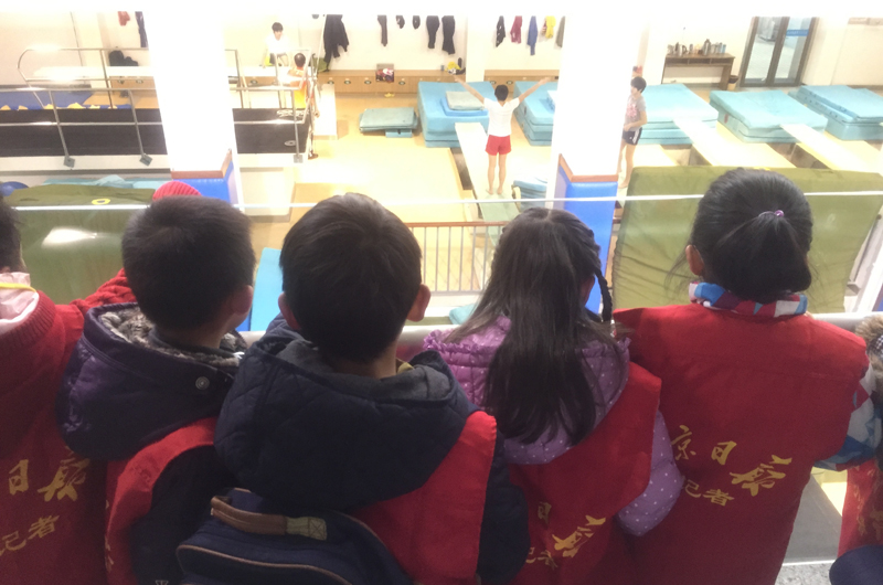 12月19日,南京日报社组织百余名小记者来我院参观采访。小记者们都是来自南京市各小学的学生。他们分成三组,兴致勃勃地参观了体操蹦床馆、跳水花游馆、羽毛球馆和自行车馆,观看了运动员刻苦又精彩的训练,近距离感受体育运动和体育文化,在老师带领下采访了部分运动员和教练员。在体操蹦床馆,2008年北京奥运会男子蹦床冠军陆春龙与小记者零距离接触,现场为小朋友们讲解蹦床及体操知识,指导大家体验蹦床运动。参观期间,小记者们活泼互动,积极提问,认真听讲,仔细记录,文明有礼。我院运动员身上体现出的刻苦训练、顽强拼搏、为国争光的爱国精神和体育精神,给小记者们留下了深刻印象。