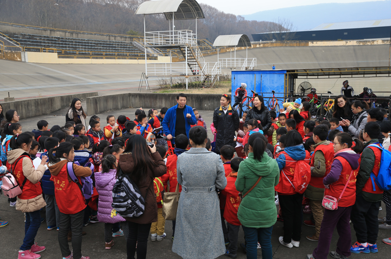 党委宣传部副部长许立俊为小记者讲解自行车运动相关知识