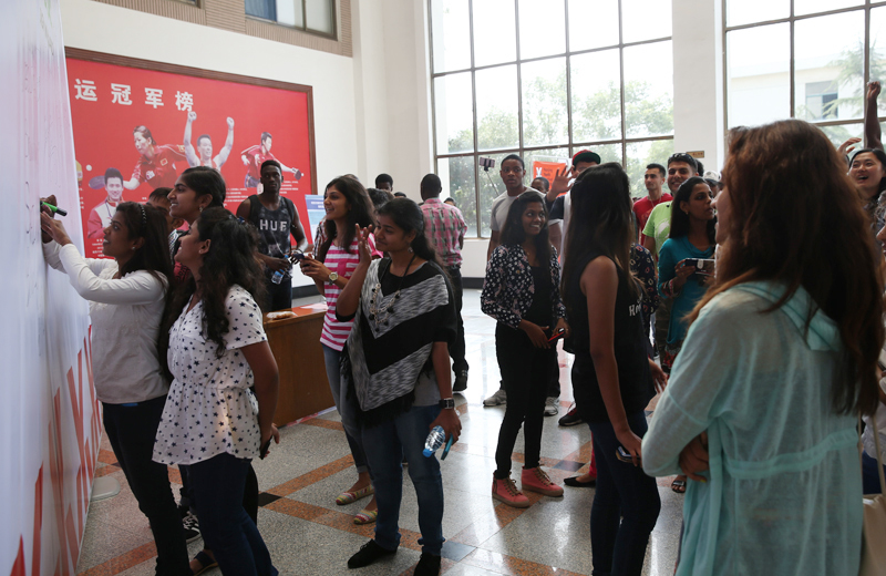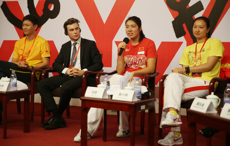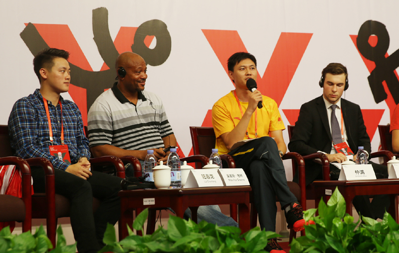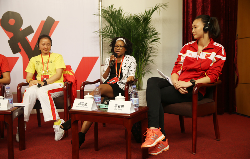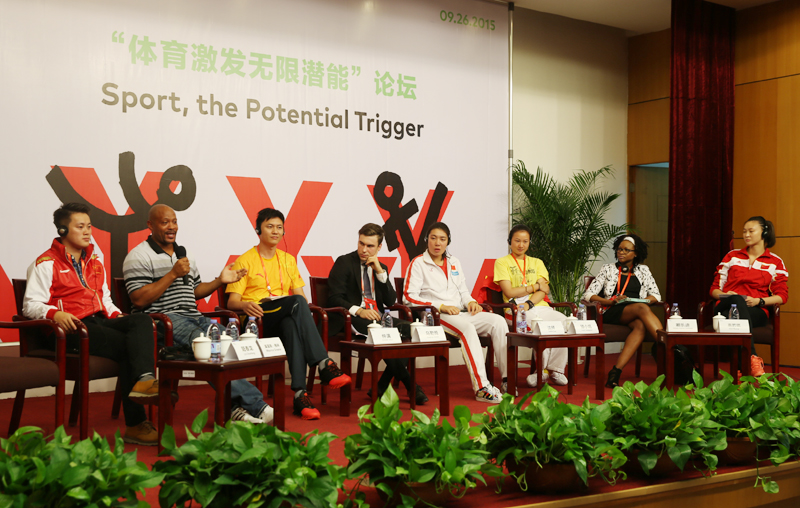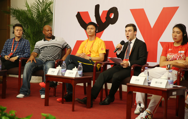 2008年北京奥运会蹦床男子个人冠军陆春龙,美国短跑名将莫里斯·格林,2008年北京奥运会男子佩剑冠军仲满,曾任亚青和青奥小顾问、2012年布达佩斯模拟联合国秘书长乌勒姆,2012年伦敦奥运会击剑冠军骆晓娟,2014年南京青奥会游泳项目六枚金牌得主沈铎,南非布隆方丹市优秀青年代表纳乐迪,中国女排队长惠若琪先后作主题发言。陆春龙、格林、仲满、骆晓娟、沈铎、惠若琪六位体坛名将和优秀青年纳乐迪回顾了自己运动生涯中的挫折和低谷,分享了他们及时调整心态、勇攀人生巅峰的心路历程,鼓励青年人永不言败,不断超越自我,敢于创造辉煌。乌勒姆在发言中提出“和平是目标,体育运动是工具,青年是催化剂”的口号,号召青年积极参与运动,以此促进和实现和平。