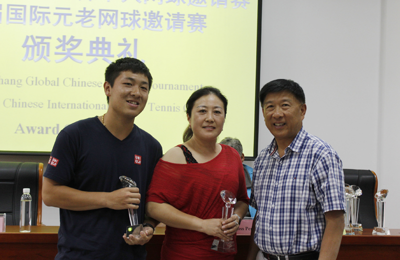 方宗刚会长为颁奖典礼致辞,金熠先生(世界华人网球协会成员)宣布比赛结果。我院副院长蒋宏伟对赛事进行了总结与点评,宣布首届“高登杯”国际网球文化艺术节圆满闭幕。蒋宏伟、方宗刚、Glenn Busby、Ross Persons、秦利君共同为获奖选手颁奖。