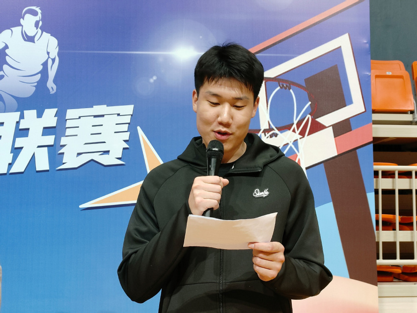 篮球社社长朱炯达详细介绍了本次篮球赛的赛制规则、赛程安排及注意事项,帮助参赛队伍和观众全面了解赛事流程。为确保比赛的公平公正,裁判员代表成佶庄严宣誓,承诺将秉持裁判规则,严格执裁,确保比赛规范有序进行。运动员代表窦靖岩郑重宣誓,表示将恪守体育精神,尊重规则、尊重对手,全力以赴展现竞技风采。