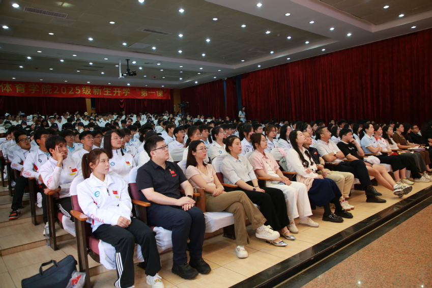党委书记为全体新生亲授“开学第一课”,是落实立德树人根本任务的有力举措,也是推进习近平新时代中国特色社会主义思想进教材进课堂进头脑的生动实践。青春因奋斗而精彩,人生因磨砺而升华。相信南体青年学子定能以更加昂扬的斗志、更加饱满的热情投入到接下来的学习和生活之中,在实学实干、挺膺担当中练就硬翅膀、真本领,为我校早日建成“特色鲜明、走在前列”的高水平体育大学贡献更多青春力量。