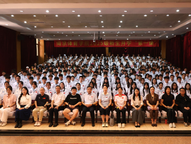 四时俱可喜,最好新秋时。9月28日上午,南京体育学院2025级新生开学“第一课”在灵谷寺校区图书馆报告厅举行。党委书记刘红明以《青春与祖国同行梦想与南体同赴》为题,为全校新生授课。党委常委、副校长鲍勤,研究生工作处处长孙国友,2004年雅典奥运会冠军陈玘和2024年巴黎奥运会冠军郝婷出席活动。本次授课采取线下、线上相结合的形式,主会场设置在灵谷寺校区图书馆报告厅,分会场设置在仙林校区C301教室,其余新生以班级为单位组织观看。学生工作处、各高等教育二级学院分管学生工作的副书记与分团委书记参加活动。