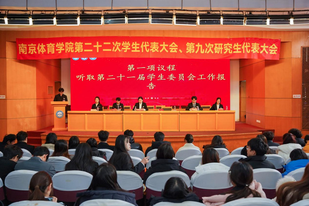 12月3日,南京体育学院第二十二次学生代表大会、第九次研究生代表大会在图书馆第一报告厅顺利召开。