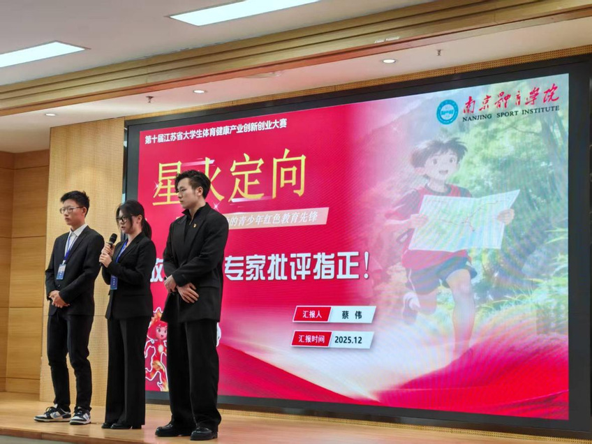 作为全省大学生体育健康产业创新创业领域的重要赛事,大赛以“赋能体育健康产业,激发青春创新活力”为核心导向,吸引了全省数十所高校的优秀团队同台竞技。我校研究生团队率先拉开战幕,队伍围绕智能化老年人运动功能、体育大模型等前沿方向,结合专业研究成果进行项目展示与答辩,展现出了扎实的理论功底、清晰的逻辑架构。本科生团队展示了星火定向、聪狮品牌等贴近市场需求的方向,凭借新颖的创意构思、可行的落地方案,在路演环节收获全场掌声。