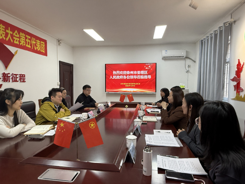 1月9日下午,姜堰区副区长冒云一行来我校开展调研交流。校团委书记陆春龙、校团委副书记陈镜如、体育教育与人文学院党总支副书记喻菊及相关工作人员陪同调研。