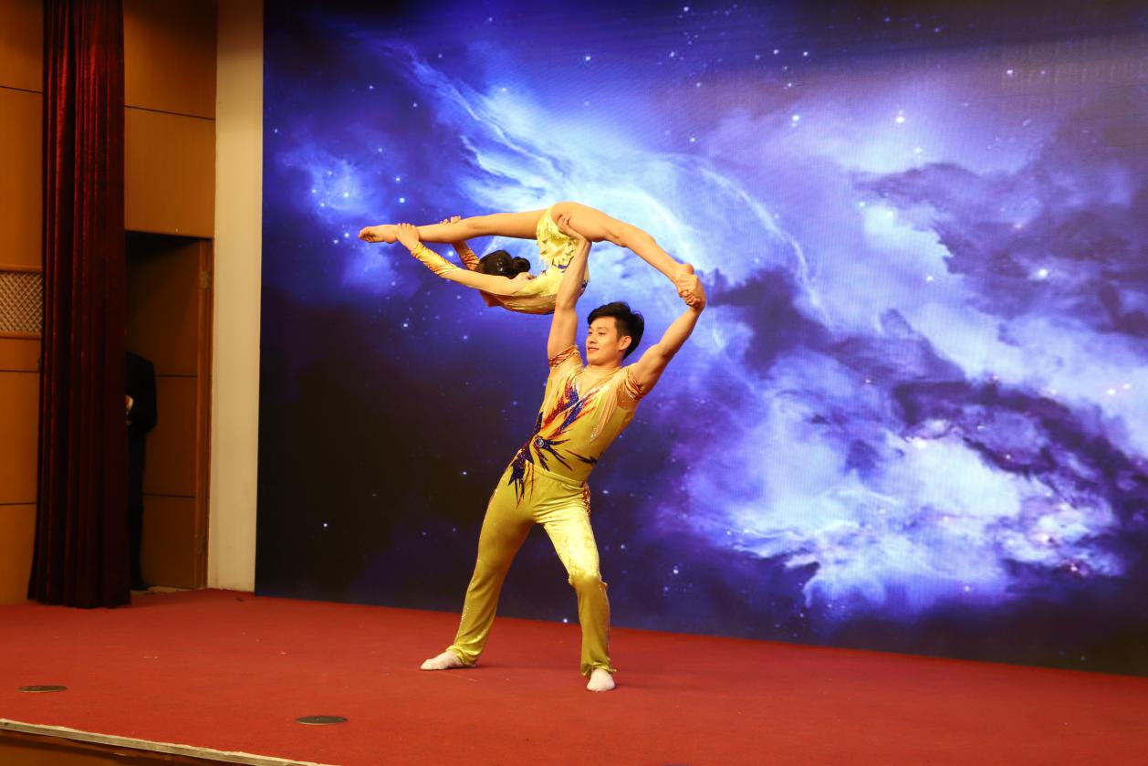 开场视频“共青团工作巡礼”全面展现了我校共青团组织紧紧围绕学校中心工作,并按照上级团组织的要求,始终把“育人”作为各项工作的根本遵循,深入开展思想育人、组织育人、实践育人三个方面的工作,有效提升了共青团在第二课堂中的育人效果。穿插于表彰环节的文艺节目为大会增添了一抹浓重的欢欣氛围,其中有激情昂扬的朗诵《一个共青团员的情怀》,有庄严的入团宣誓仪式,再现经典的情景剧《五四运动》,集唯美、轻柔、灵动、曼妙于一体的艺术体操《快乐时光》,以及清新、活泼、跌宕起伏的技巧节目《青春织梦》等。这些精心选排的节目不仅令人耳目一新,其精湛的表演也展现了青年大学生和运动员的青春风采。校党委书记朱传耿在大会总结讲话中充分肯定了过去一年我校共青团工作取得的优异成绩,同时向全校各级团组织、广大团员和团干部提出三点希望:一是要有志气,做到胸怀理想、坚定信念;二是要有才气,做到勤奋学习、提高本领;三是要有勇气,做到应势而为、敢于担当。