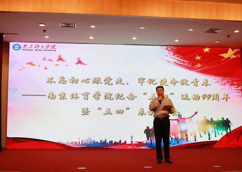 5月4日晚,我校在图书馆报告厅召开南京体育学院纪念“五四”运动99周年暨“五四”表彰大会,表彰在共青团工作中表现突出的先进集体和先进个人。校党委书记朱传耿、校党委副书记、副校长汤岩出席大会。学校相关职能部门、各教学、训练部门主要负责人、团总支书记、大学生辅导员、青年团员代表参加大会。