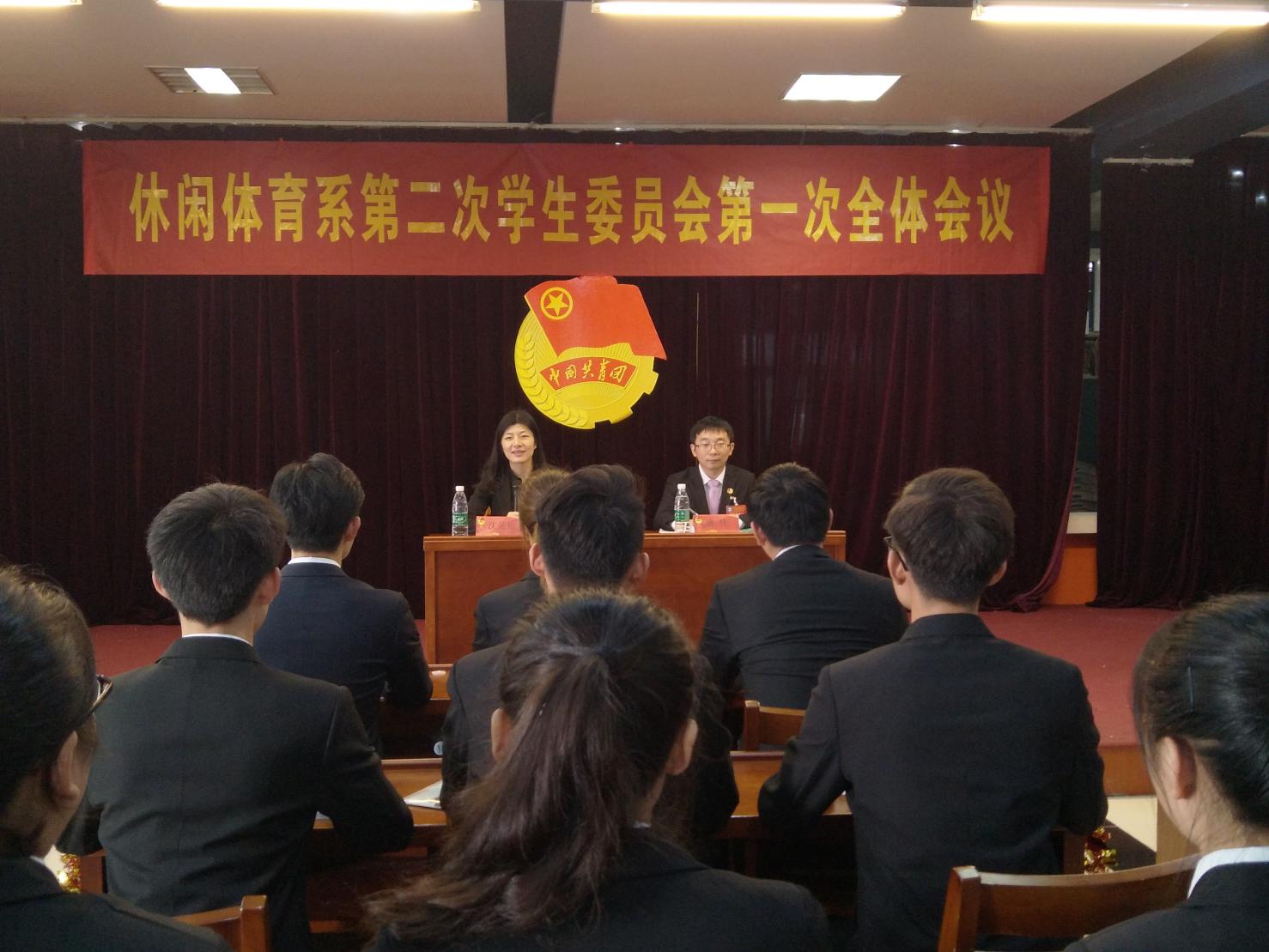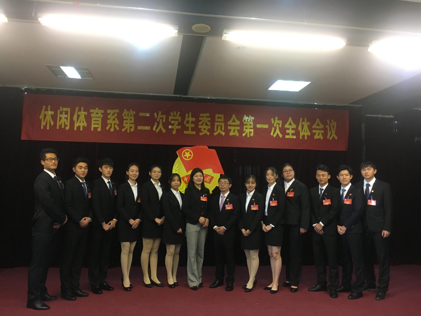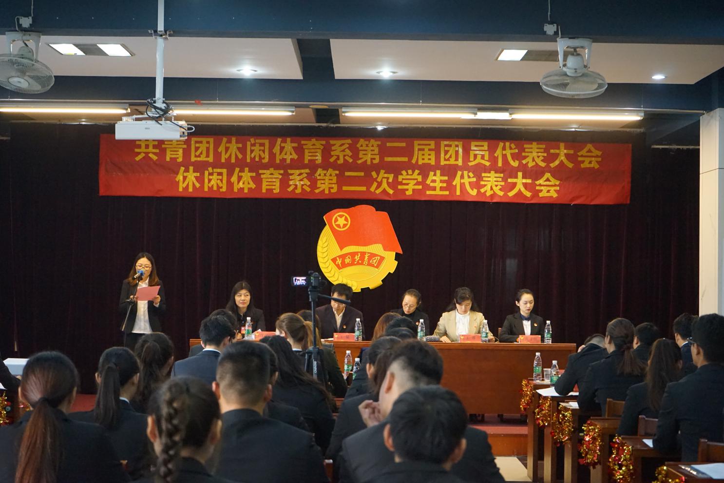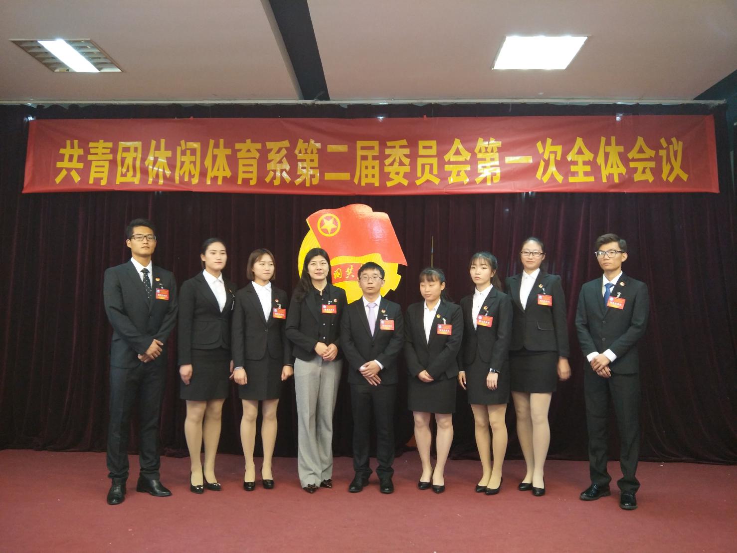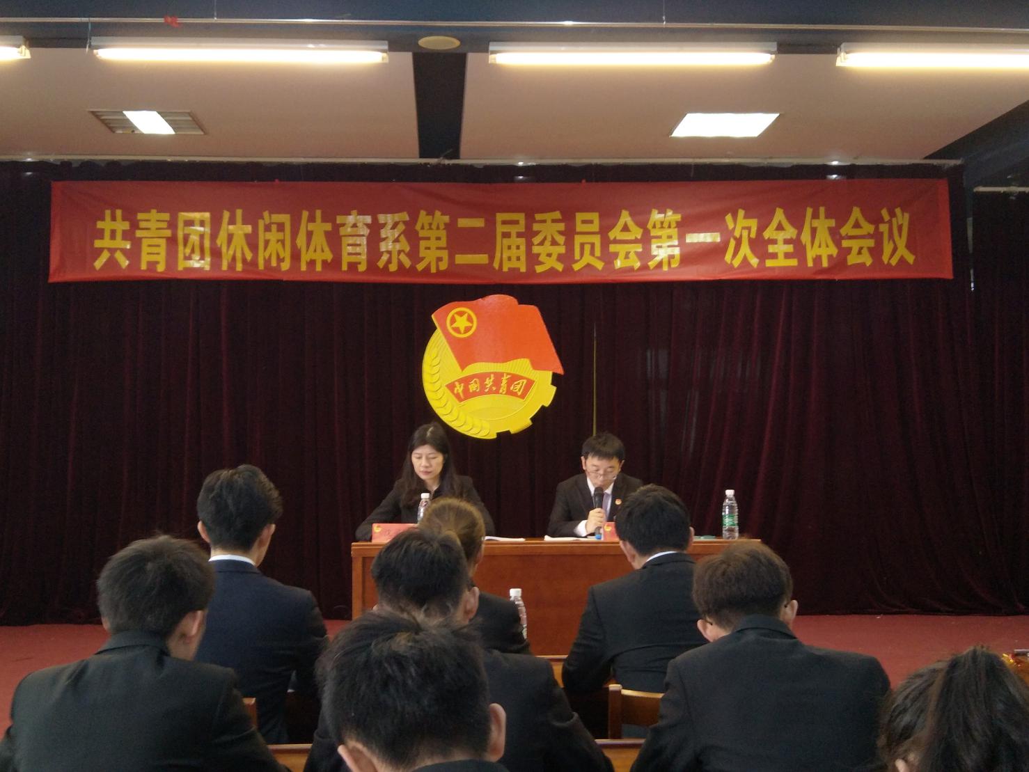 2017年10月28日,共青团休闲体育系总支委员会第二次代表大会暨休闲体育系第二次学生代表大会在仙林校区大学生活动中心隆重开幕。出席开幕式的领导与嘉宾有系党总支书记、主任于翠兰同志、党总支副书记王蓉同志、校团委书记王猛同志,校团委阚妮妮同志、校学生会副主席张子怿,以及体育系、运动系、民族体育与表演系、运动健康科学系与研究生部团总支书记、学生会主席等。休闲体育系团总支书记沈灵知同志主持开幕式。