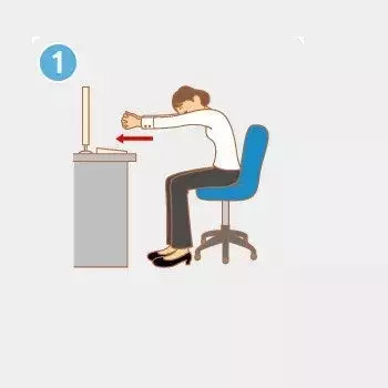 ②坐在椅子上,把手肘伸直,手掌压在椅子上。此时,手腕向前腕内侧用力。