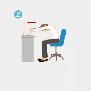 ①椅子不要坐得太深,坐到椅子的3分之1的位置,挺胸收腹,双手放在背后,双掌合实,十指紧扣。肩胛骨尽量往中间挤压,挺直胸膛,保持15秒。