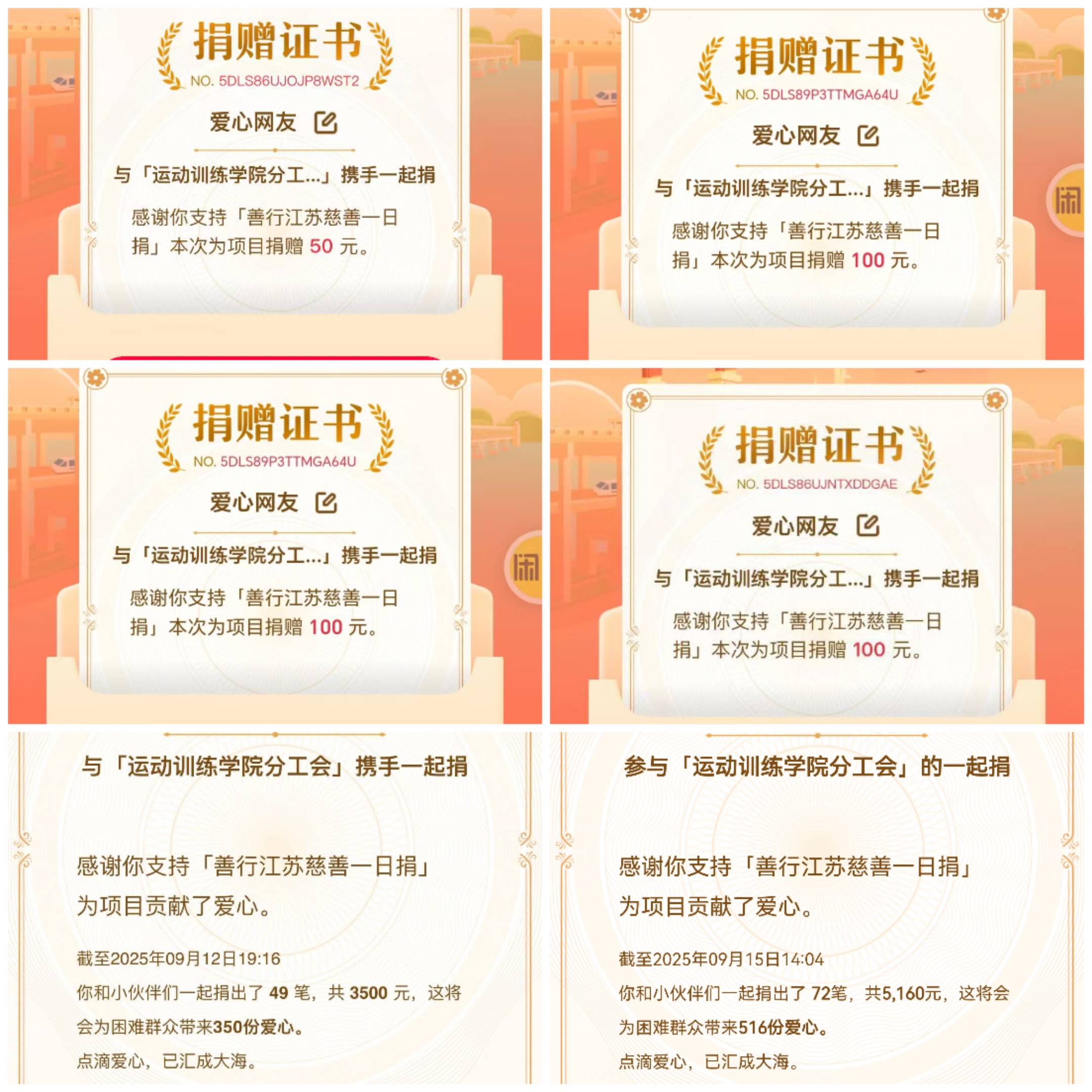 部分线上捐款证书