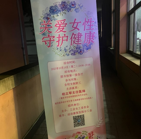 为积极响应“健康中国2030”规划纲要号召,切实提升我校女教职工的健康素养与自我保健意识,10月14日晚,由南京体育学院工会女工委员会主办、运动康复医院分工会承办的“关爱女性,守护健康”宫颈健康专题知识讲堂在图书馆第一报告厅顺利举行。本次活动采用线上线下相结合的方式同步开展。