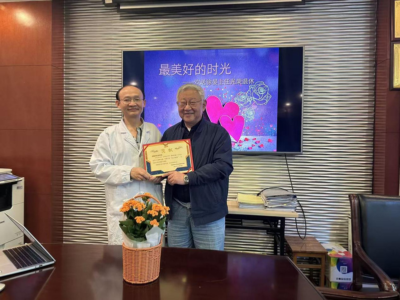 会议中,杨晖副院长宣读了授予徐晏主任的荣誉证书的决定,内容满载对其数十载兢兢业业、无私奉献的肯定与赞扬。随后,王家祥院长为徐主任颁发了荣誉奖状。大家共同追忆与徐主任共事的点滴往事,现场气氛活跃,情谊浓厚,欢声笑语中洋溢着对往昔岁月的深切怀念与对徐主任未来生活的美好祝愿。