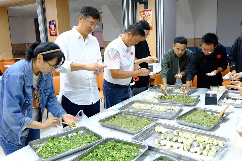 大家齐聚一堂,欢声笑语不断,纷纷展示自己的包饺子技艺,尽管手法各异,但每个人都全情投入。随着热气腾腾的饺子上桌,整个教工食堂大厅弥漫着诱人的香气。大家一边品尝着美食,一边分享生活点滴,场面热闹而温馨。饺子象征着团圆,也成为连接每一位教职工心灵的纽带,这不仅是一次简单的美食制作,更是一场传统文化体验与情感交流盛会。