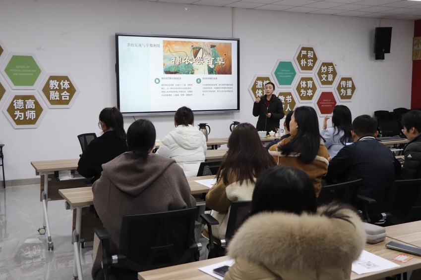 活动伊始,茶艺老师以“茶的历史、鉴赏、养生与延展”为主线,带领教职工穿越时空,从唐代陆羽《茶经》的经典解读,到现代茶艺的雅致实践,深入剖析茶文化的精髓。通过知识问答环节,教职工们积极互动,在轻松优雅的氛围中感受中国茶道的博大精深,现场笑声与掌声交织,气氛热烈而温馨。