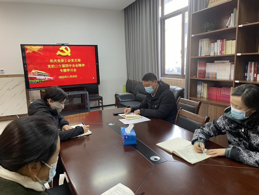 11月28日上午,机关党委工会党支部在工会会议室召开党的二十届四中全会精神专题学习会。支部书记张健主持会议,支部党员参加会议。