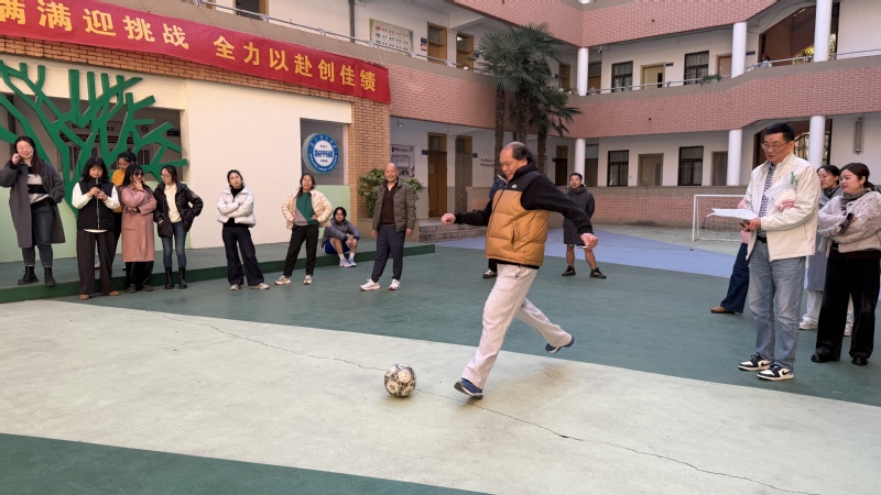 为丰富教职工的业余文化生活,营造积极向上的校园氛围,11月25日下午3时,附属学校分工会在学校一楼天井空地处举办了一场“苏超主题”趣味射门挑战赛。