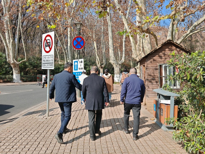 时值初冬,中山陵景区色彩斑斓,林叶尽染,别具一番静美韵致。中午时分,参与活动的会员们准时于学校西大门集合。自西大门起步,沿灵谷寺路向北悠然徒步,会员们沿途欣赏道路两侧梧桐落叶与苍翠灌木交织的初冬画卷,畅谈工作与生活,气氛温馨而活跃。此次徒步不仅使大家在运动中锻炼体魄、舒缓压力,也让大家沉浸式感受到钟山风景区宁静和谐的自然生态之美。活动融人文陶冶与自然观览于一体,为会员们创造了一次难得的互动交流与户外休闲体验。
