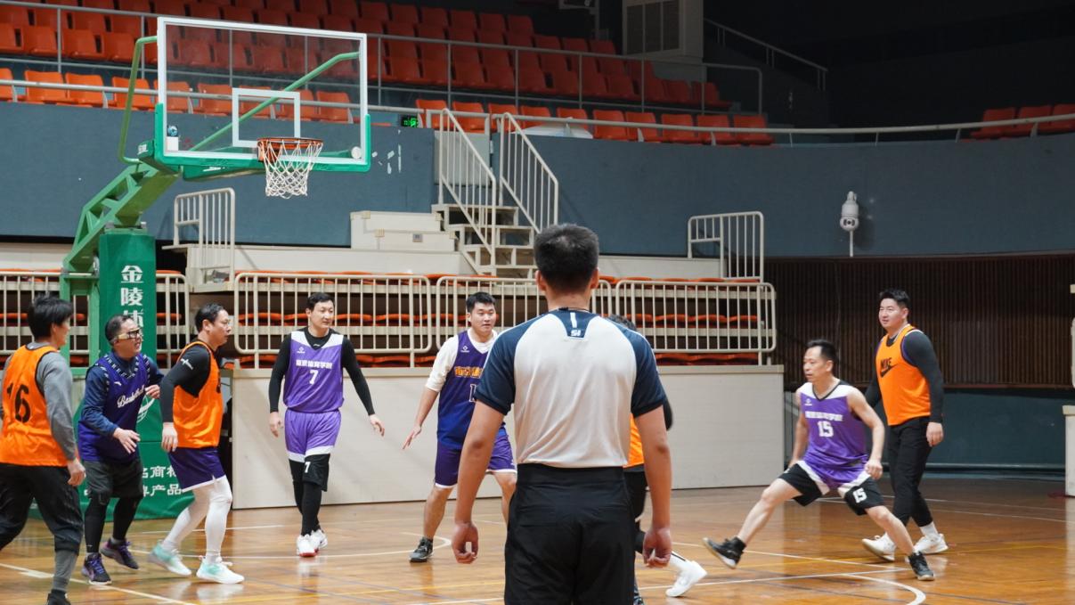 随着裁判一声清脆的哨响,比赛正式拉开帷幕。仙林校区联队凭借年轻队员的速度优势,开场便发起猛烈攻势,连续快攻上篮得分,瞬间点燃全场气氛;灵谷寺校区联队则依托资深教职工的经验优势,稳扎稳打,通过严密的联防和精准的中距离投篮逐步缩小比分差距。经过五节激烈比拼,灵谷寺校区教职工篮球队以4分之差憾负仙林校区教职工篮球队。