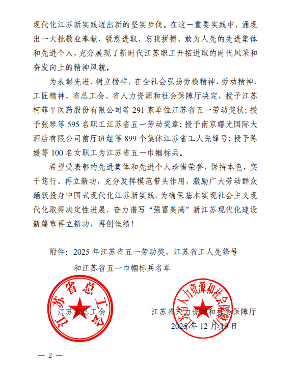 日前,江苏省总工会公布了《江苏省总工会关于表彰2025年江苏省五一劳动奖、江苏省工人先锋号、江苏省五一巾帼标兵的决定》,南京体育学院(江苏省)击剑队荣获“江苏省工人先锋号”荣誉称号。