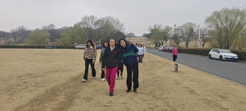 活动伊始,女教职工们一同演练健身气功“八段锦”。大家动作规范标准、身姿刚柔并济,一招一式间既舒缓了日常教学工作的压力,涵养了身心状态,更充分彰显了我院教职工扎实的体育专业素养和积极健康的精神面貌。集体热身完毕后,健步走活动正式启动,学院女教职工们三五结伴、步履轻快,沿着约4公里的赏梅路线向苗圃打卡点稳步进发。沿途早春景致错落,红梅缀枝、暗香沁人,大家一边漫步欣赏校园自然风光,一边畅谈工作点滴与生活趣事,交流教学心得、分享育人感悟,欢声笑语始终萦绕沿途,在轻松愉悦的氛围中拉近了彼此距离,定格下一幕幕温馨和谐的美好瞬间。